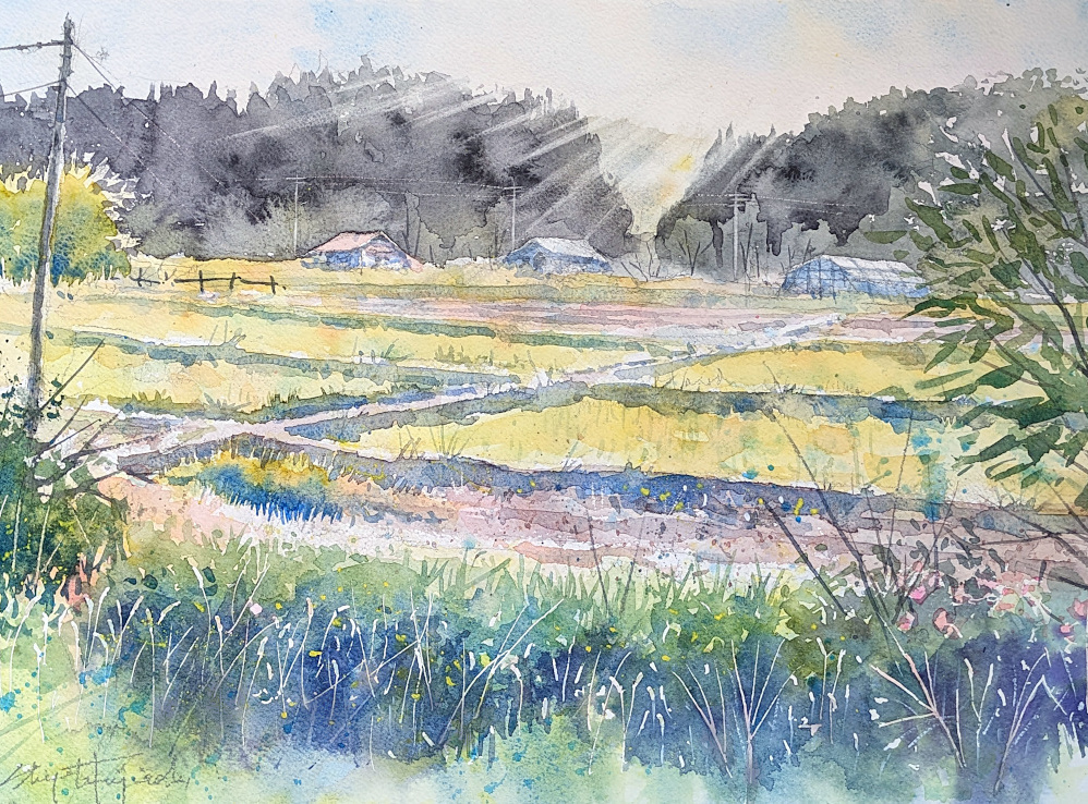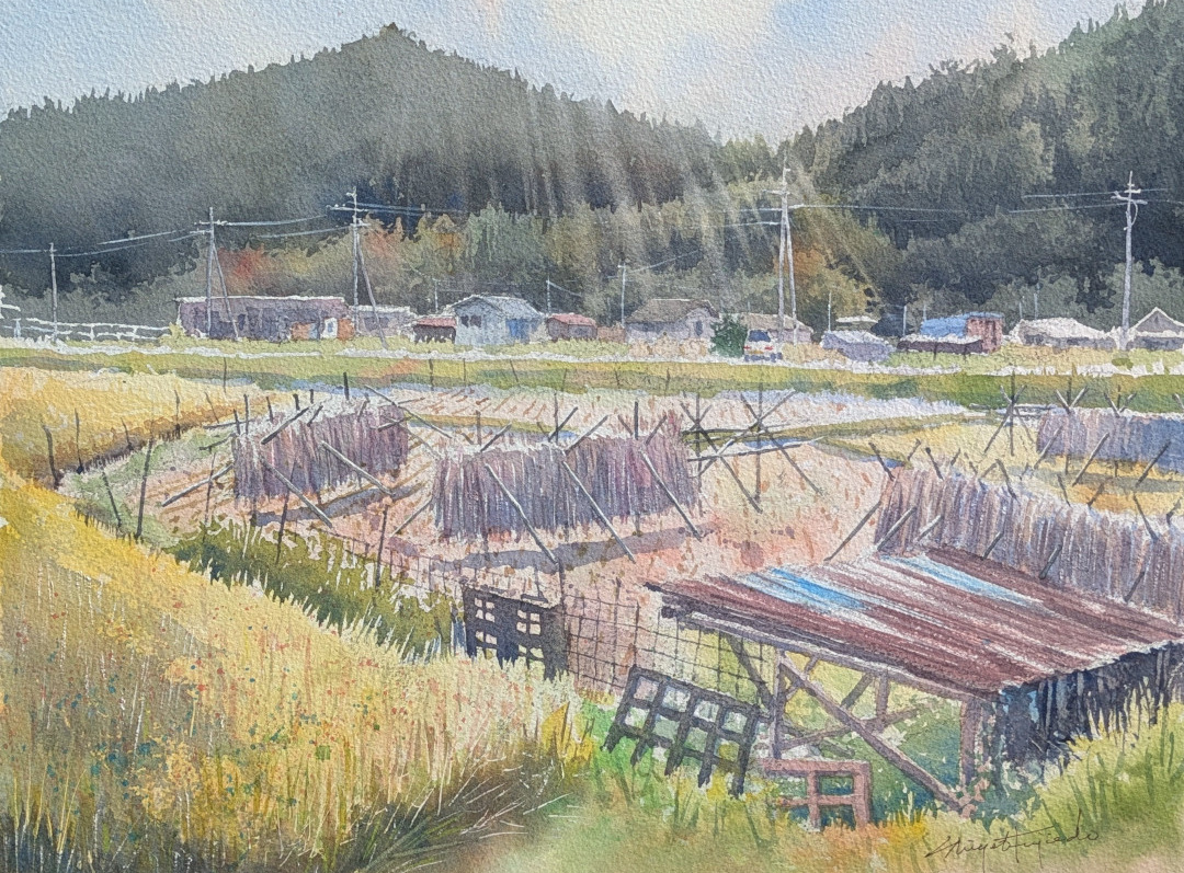 作品画像はクリックすると拡大します。画像下には制作した日付を表示しています。右側は作品のタイトル/使用した紙のブランド及び紙目の粗さ/モチーフの場所などを記載してあります。
