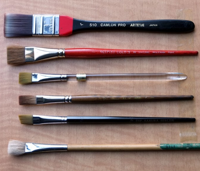 価格は材質によってピンキリですが安価なナイロン筆は数百円、最上級品は黒テンの毛を使ったものでコリンスキーと呼ばれ1本、数千円~数万円もします。残念ながら経験上高価なものはやはり書き味が違います。ナイロン筆でもいいものは有るけれど穂先がすぐ磨り減って長持ちはしません。いずれにしてもメンテを怠るとどんな筆でもダメになってしまう。
