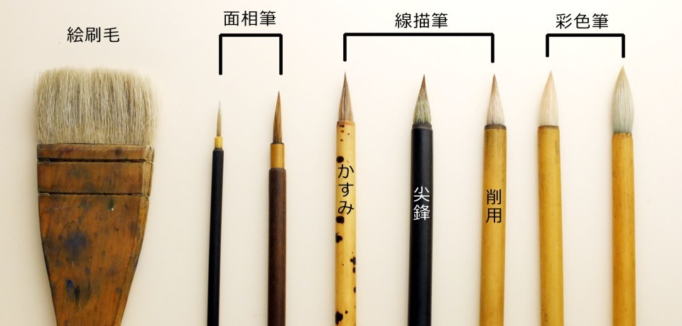 《削用筆》 芯がイタチの尾毛で出来ていて腰があり外側が羊毛で水を含む役目をする。これ最高!