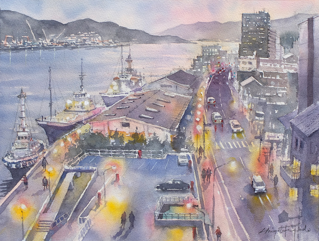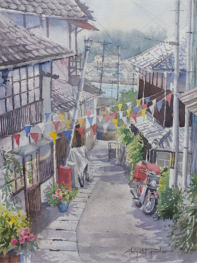 NEW!! 2025.8/10【正午の港町商店街】紙:ウォーターフォード ホワイトCold Press/サイズ:37.0cm×27.5cm
