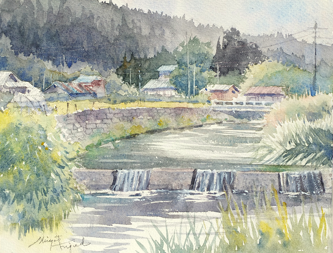 NEW!! 2025.8/16【入野川と集落】紙:ワーグマン Cold Press / サイズ:37.5cm×26.5cm